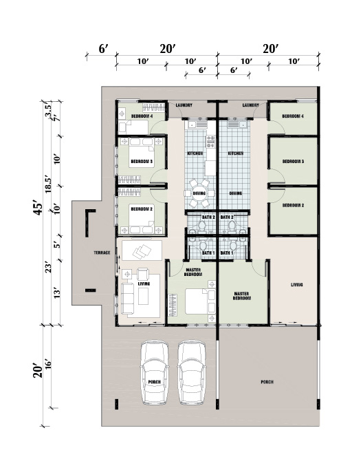 Build Up: 20′ x 45′
